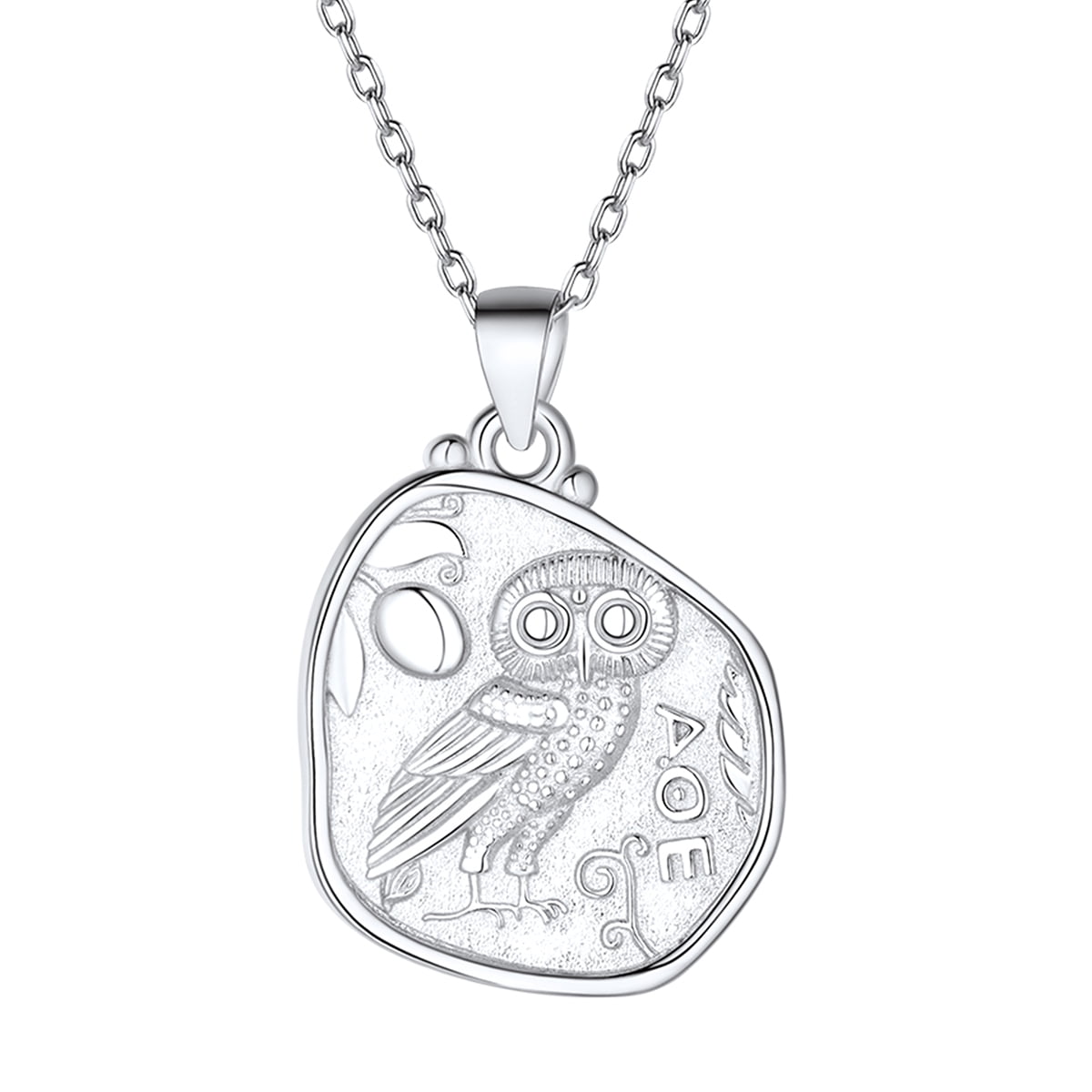 FOCALOOK Athena Owl Necklace Goddess of Wisdom Greek Mythology Sterling Silver Coin Pendant Necklace for Women