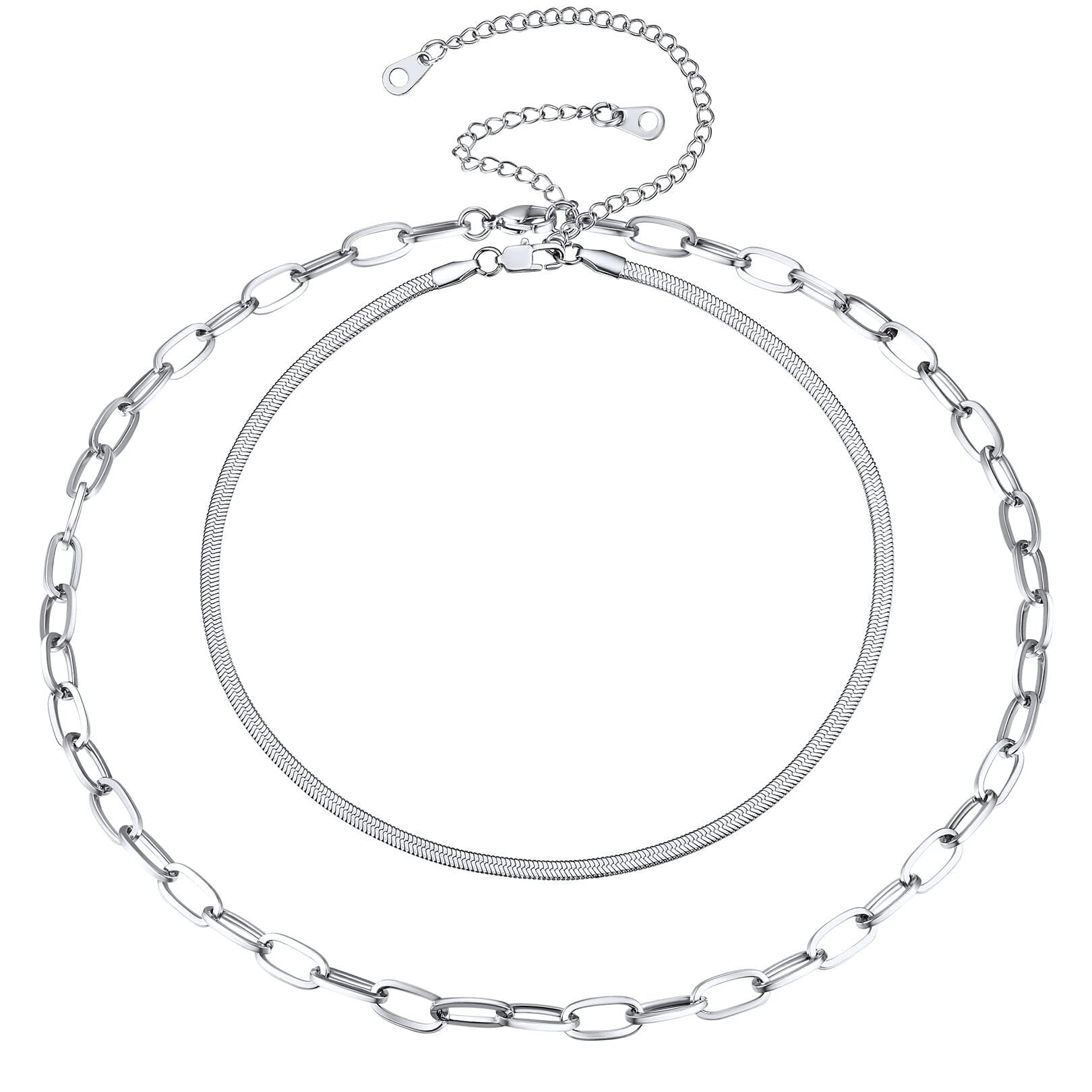 FOCALOOK Link Layered Necklaces Stainless Steel Layering Paperclip Snake Chain Choker Sets for Women