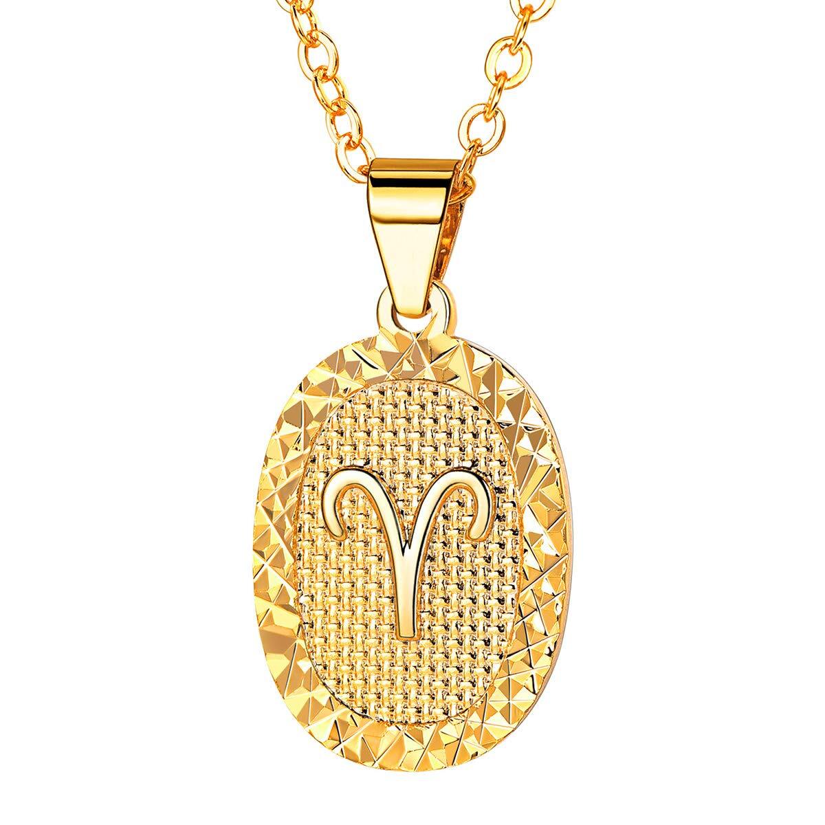 FOCALOOK Aries Gold Necklace for Women Oval Horoscope Medallion Pendant Constellation Zodiac Sign Jewelry