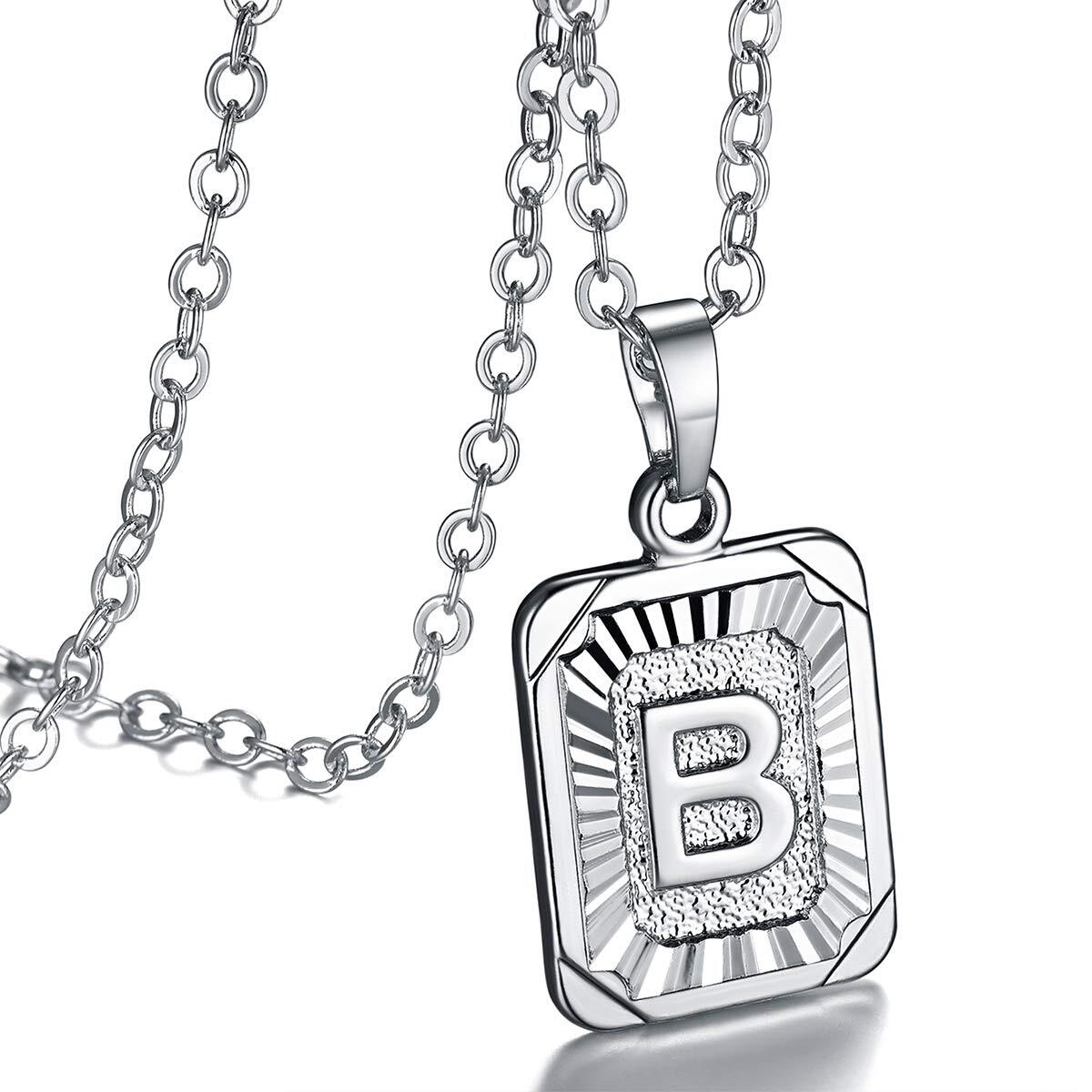 FOCALOOK Initial Pendant Necklace for Women Men Silver Dog Tag Letter Capital Alphabet Necklace