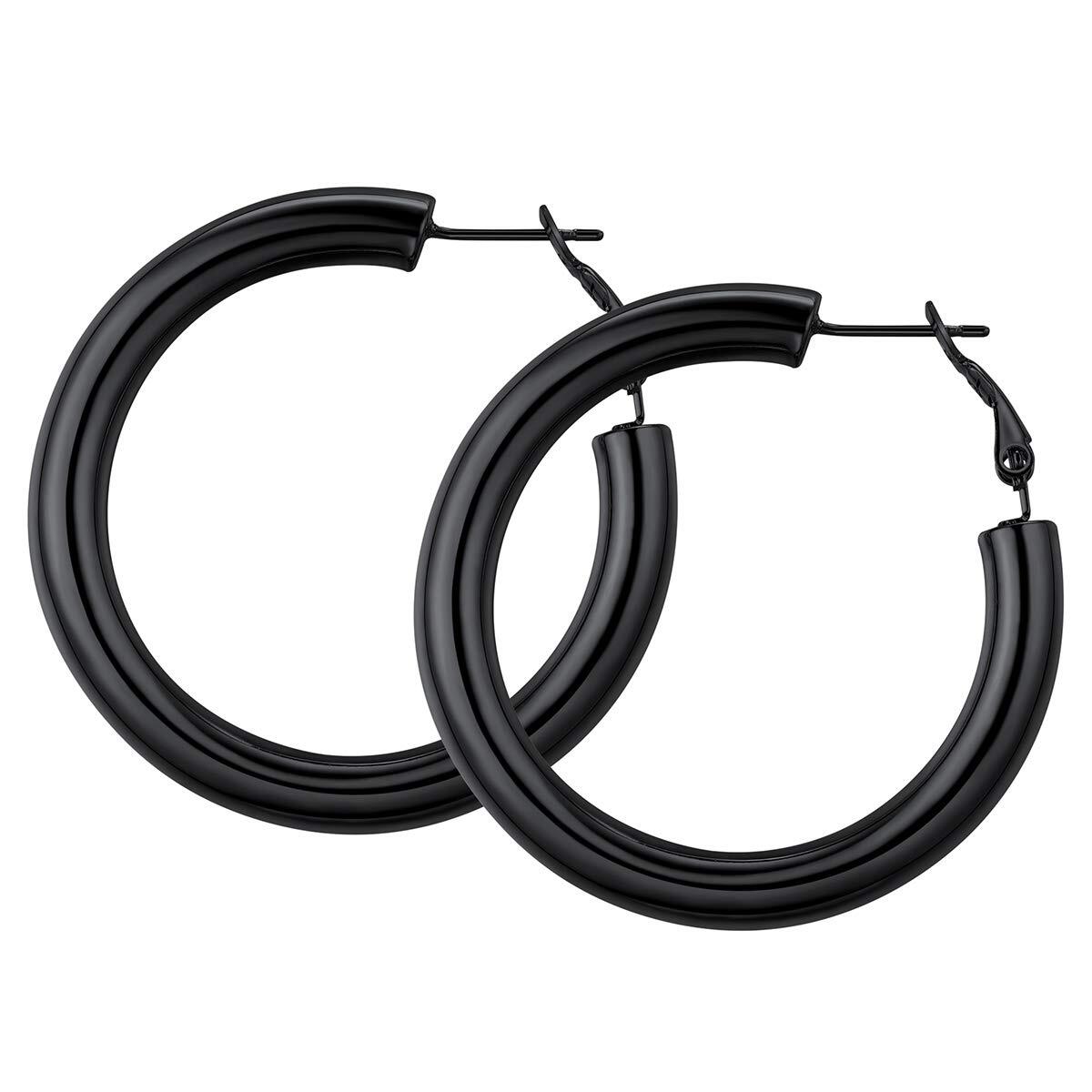 FOCALOOK Chunky Huggie Hoop Earrings for Women Stainless Steel 30mm Round Cirlcle Endless Hoops Black