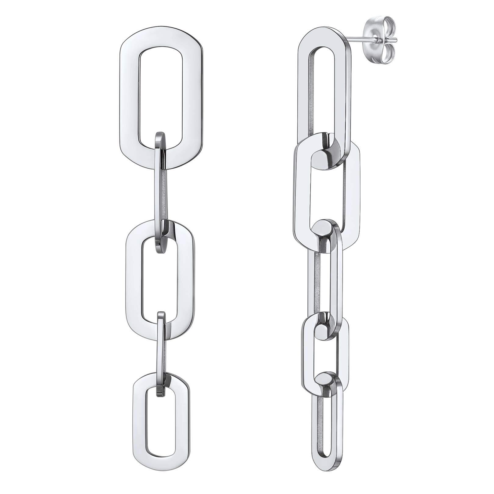 FOCALOOK Link Chain Dangle Earrings for Women Teens Stainless Steel 61mm Paperclip Drop Earrings