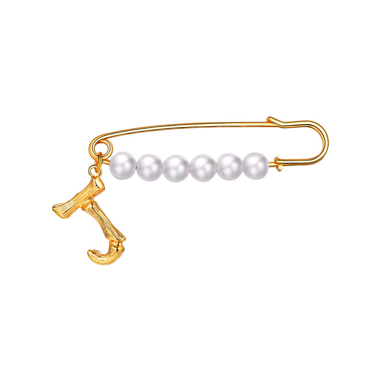 [Clearance] Bamboo Initial J Letter Brooches Pins for Women Girls Gold Plated Pearl Brooch Jewelry Gift on Clearance