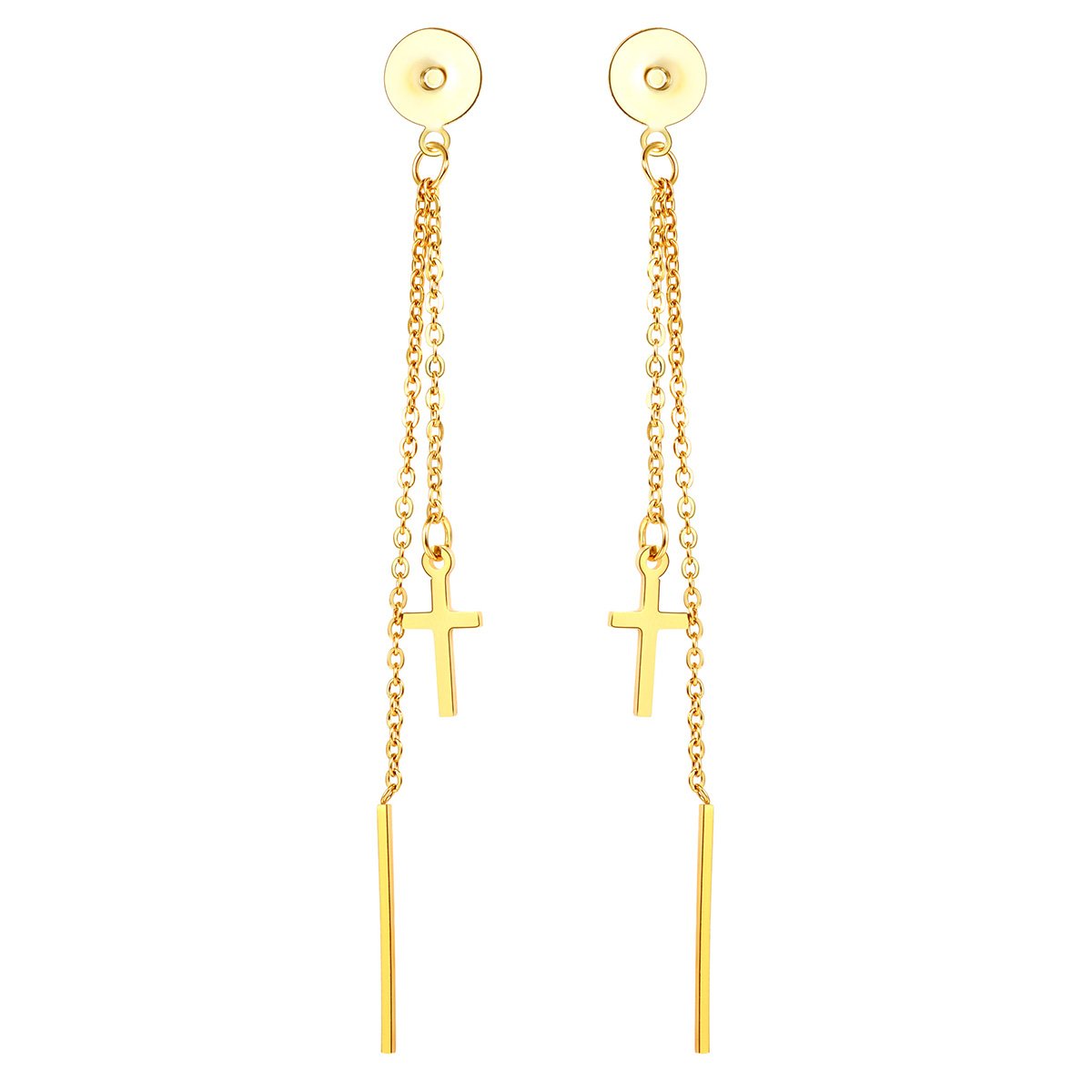 [Clearance] Cross Drop Earrings for Women Girls Two Line Chain Link Stainless Steel Gold Bar Charm Christian Religious Hypoallergenic Piercing Earrings Sensitive Ear Jewelry Gift on Clearance