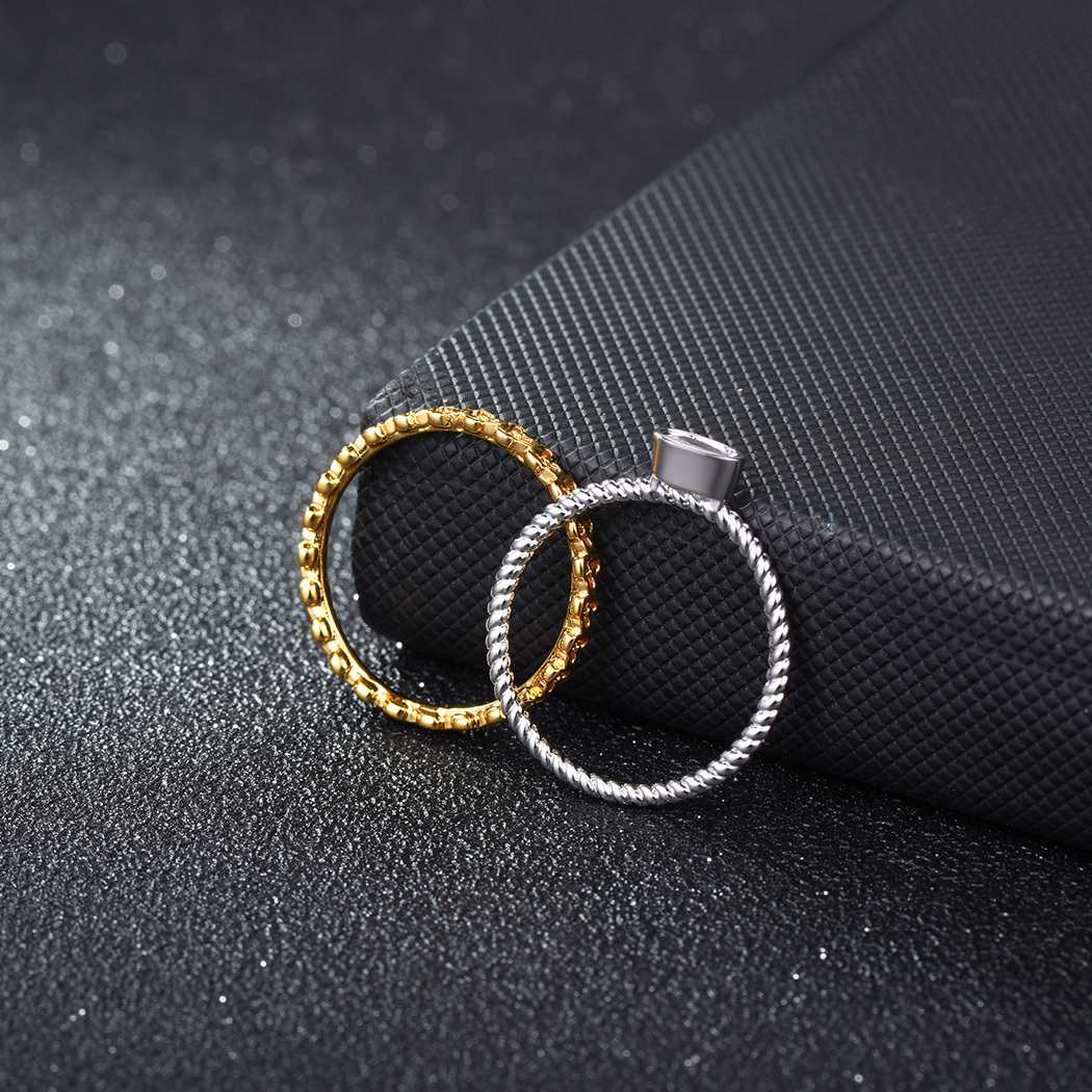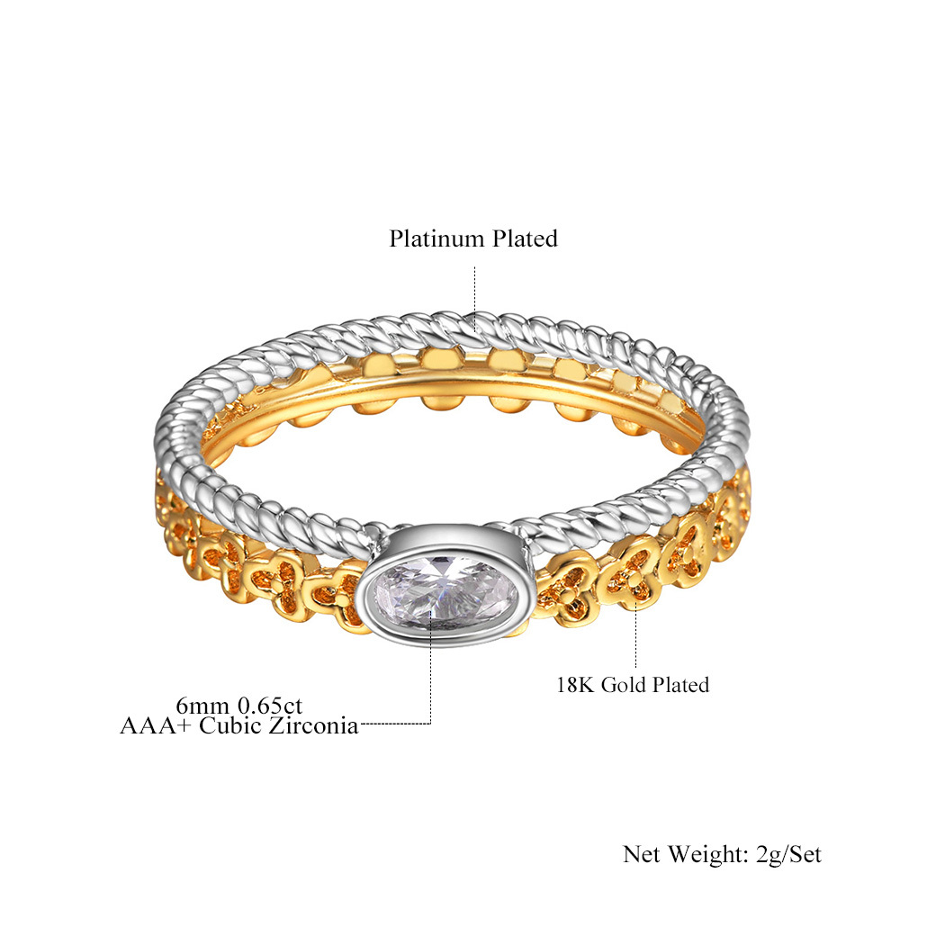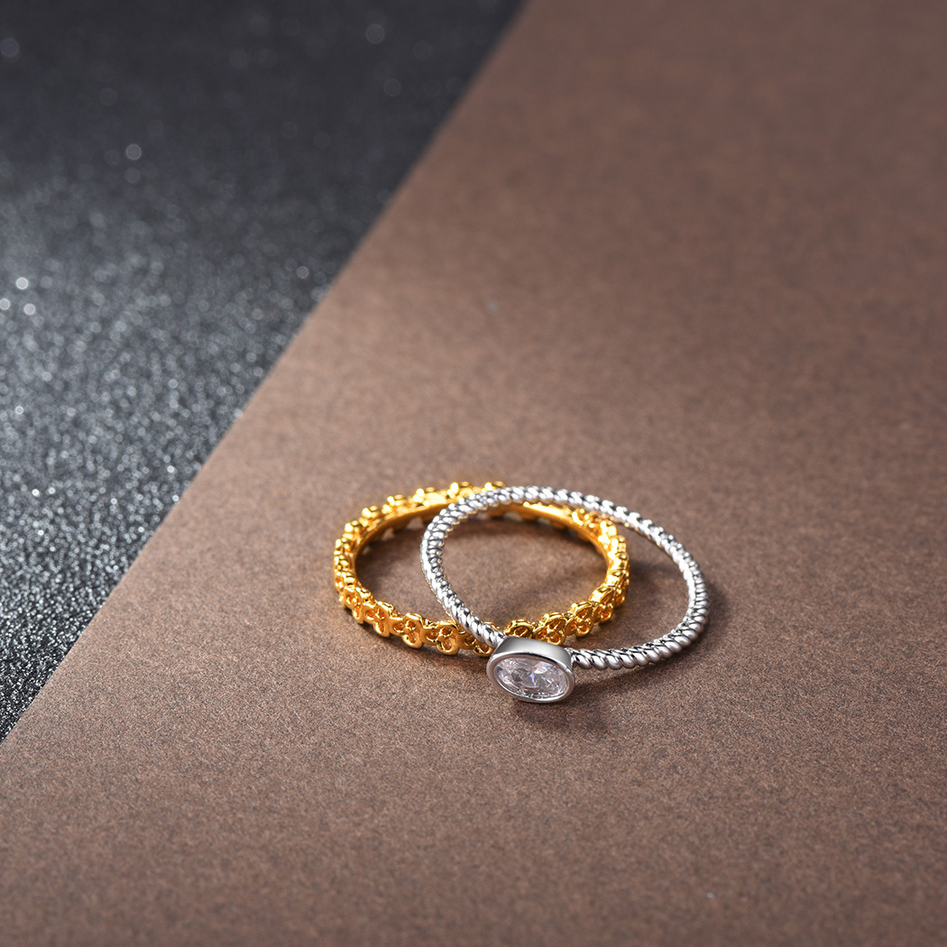 TIMELESS STYLE: Introducing an exquisite set of Silver/Gold two tone stackable eternity band rings, adorned with dazzling cubic zirconia stones. Crafted with meticulous attention to detail, these twist design rings are a testament to timeless elegance and sophistication.
