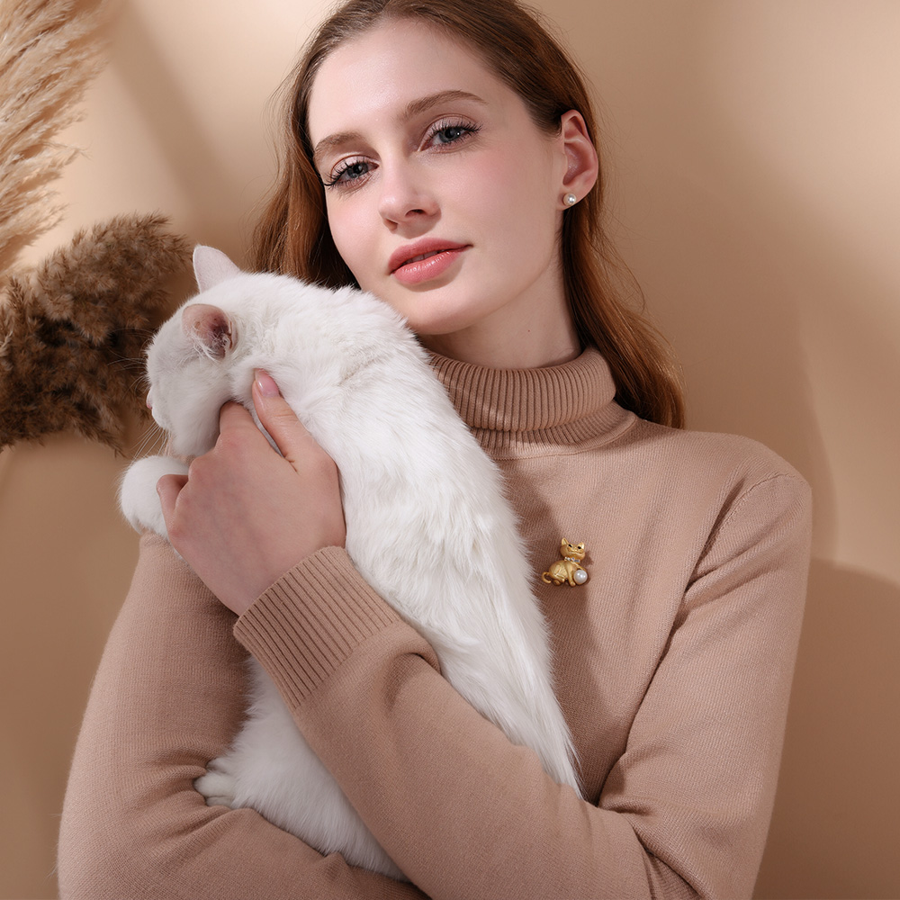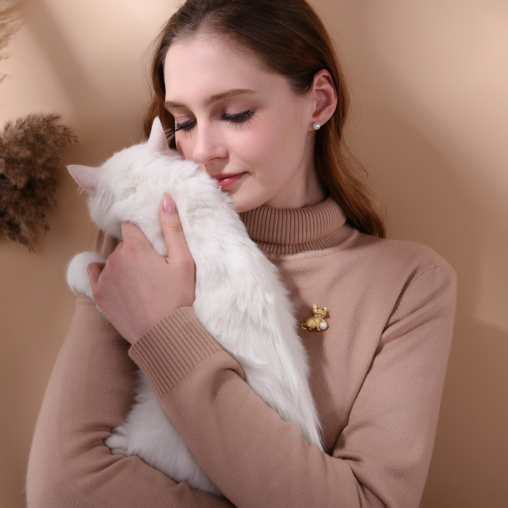 Material gold-plated copper with pearl rhinestone, this cat brooch is produced with exquisite craft. Nickel-free,Lead-free,Cadmium-free and Hypoallergenic.