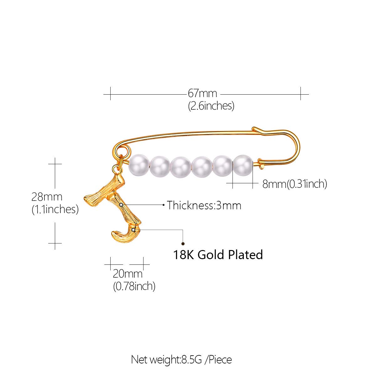 Large Pearl Brooch: pearl diameter 8mm, brooch length 67mm, not too big or small, thick pin.