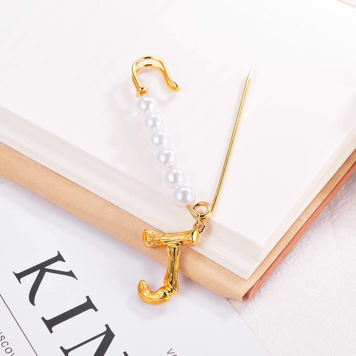Gold Brooch Material: 18k gold plated alloy and imitation pearls. Used to initialize personal items as gifts.