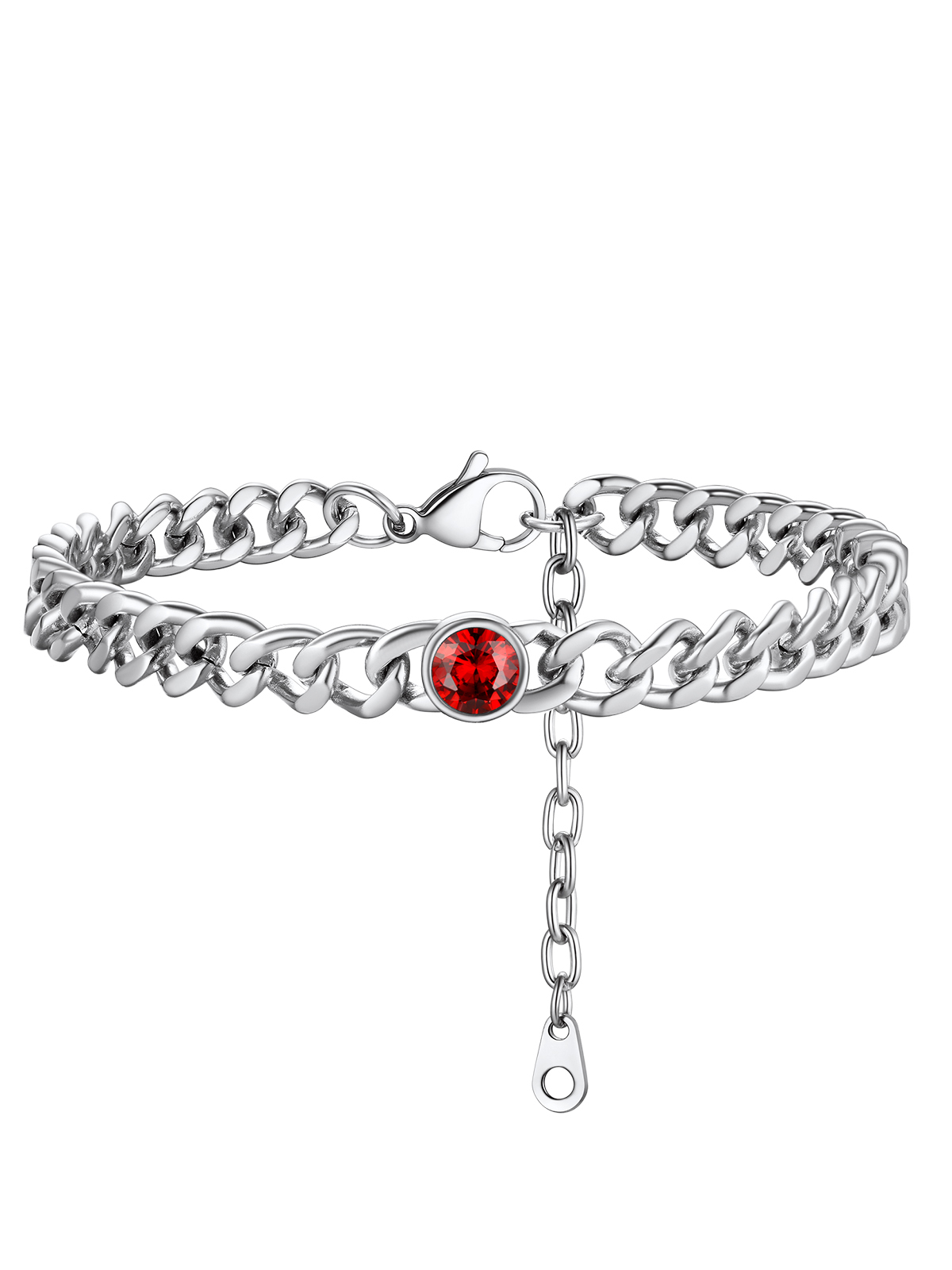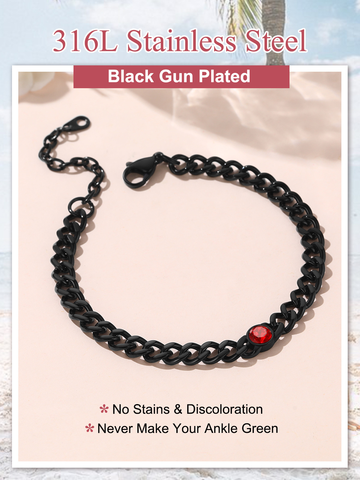 Crafted with stainless steel and featuring a stunning Cuban Link design, this ankle bracelet exudes both durability and elegance. Adorned with 12 months simulated gemstones, it adds a touch of sophistication to any outfit, making it the perfect piece for everyday wear or special occasions. Whether it's a birthday, Valentine's Day, or Mother's Day gift, this dainty foot chain is sure to delight.