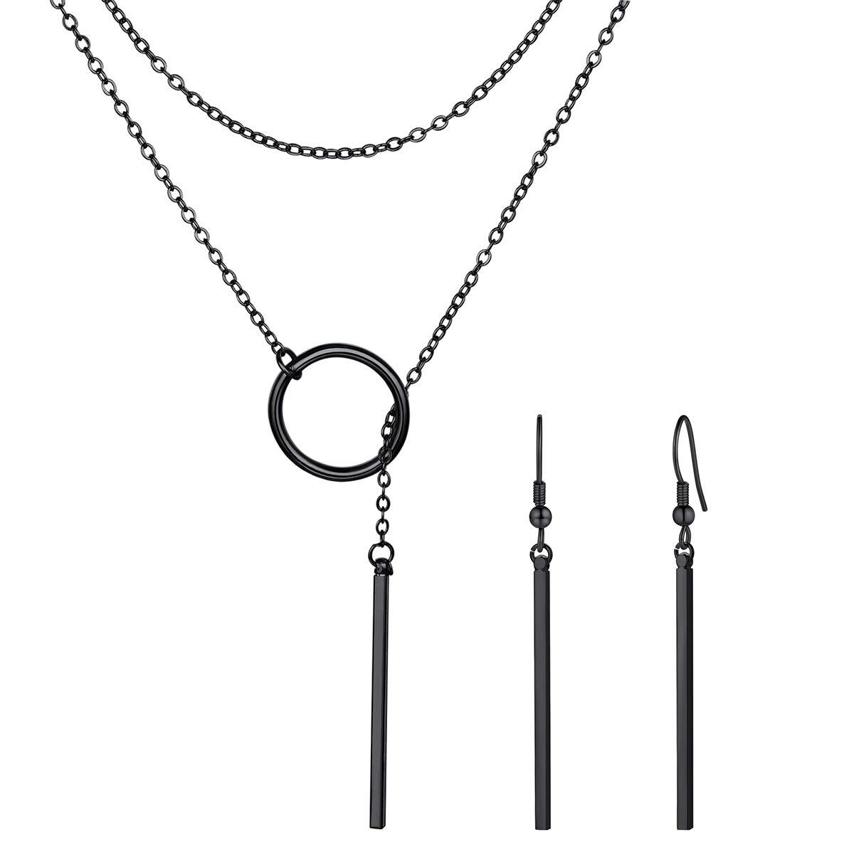- Vertical Bar Necklace Earrings Set: Simple fashion long chain bar pendant wrap choker necklace with drop bar earrings. Platinum bar jewelry set for women.