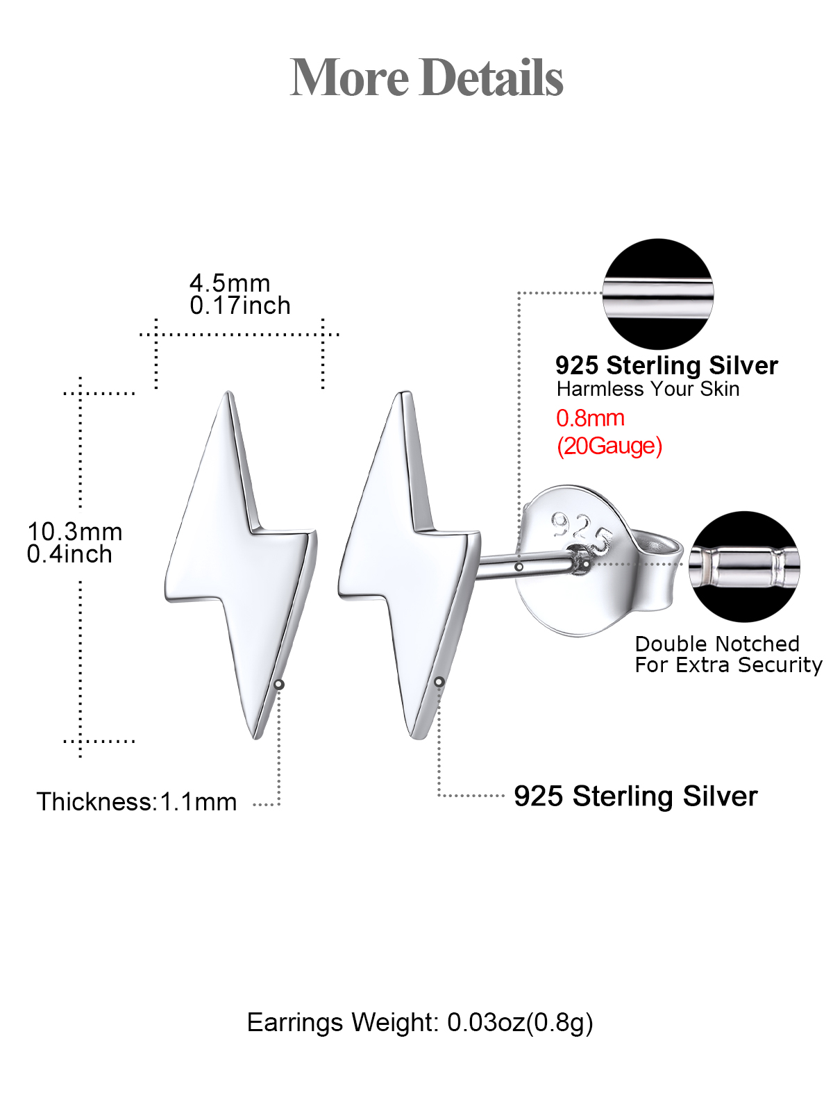FOCALOOK's Lightning Stud Earrings for Women - the perfect accessory for any occasion! Our simple and cute earrings are made with high quality 925 sterling silver materials and platinum plated. These dainty and tiny earrings are the perfect way to elevate your jewelry collection.