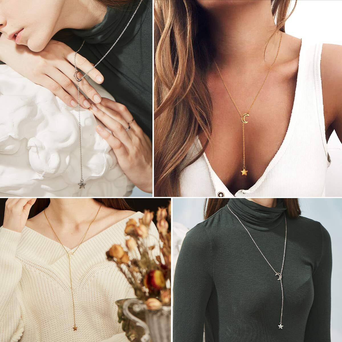 - Special Design: The dainty open moon and star y necklace can be pulled as a choker and let the long vertical bar hang down. It works great when you wear it with a low cut top.