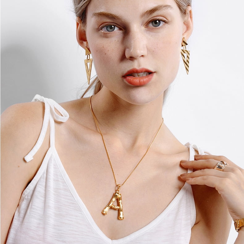 - Hypoallergenic Material: The statement bamboo necklace is made of hypoallergenic 316L stainless steel, 18k Gold Plated, large bling gold bamboo letter pendant necklace.