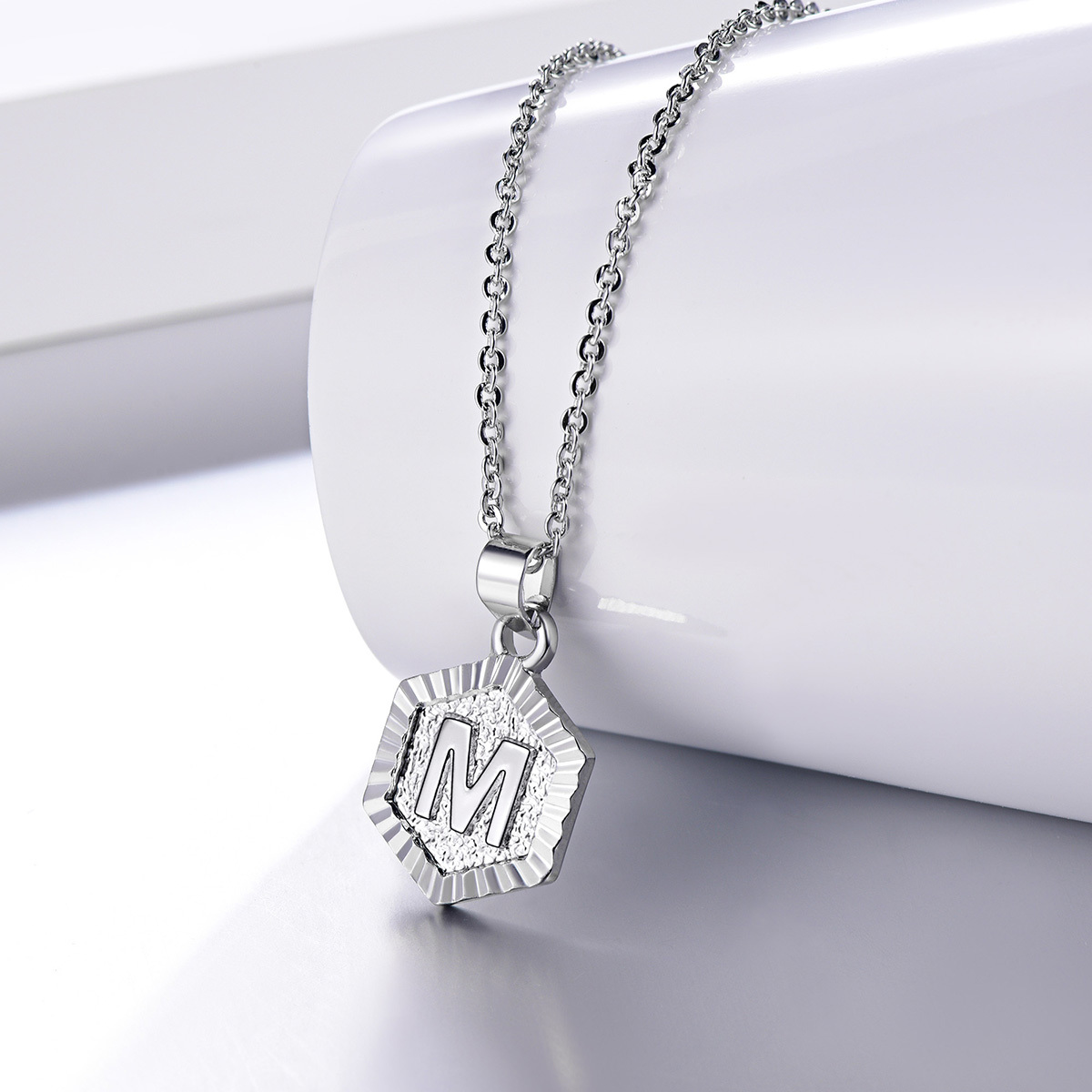 - Measurement: Hexagon Letter Pendant length:25mm,width:14.5mm. Chain length: 18inch(45cm), with 2inch extension. Weight:5.5g.