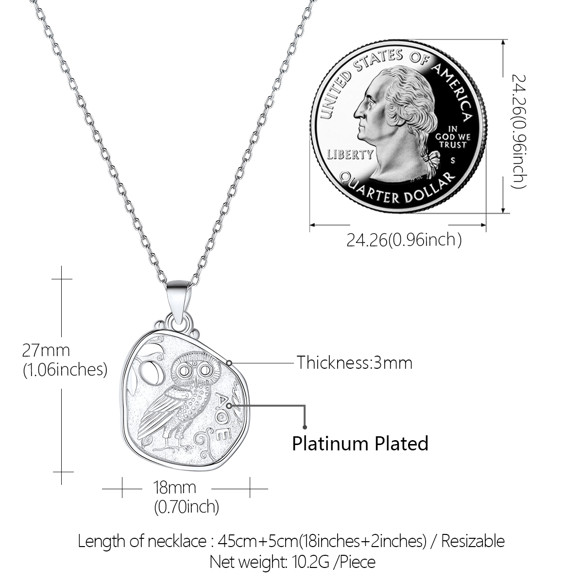 - 【Design Inspiration】Inspired by"Owl of Athena" in Greek Mythology, as a symbol of wisdom, reason, justice and knowledge, the owl has been a longtime symbol for wisdom and foresight. It is said that the animal of the Greek Goddess Athena is an owl. This disc coin necklace not only reminds you of your inner wisdom, but also brings it to your future decisions.