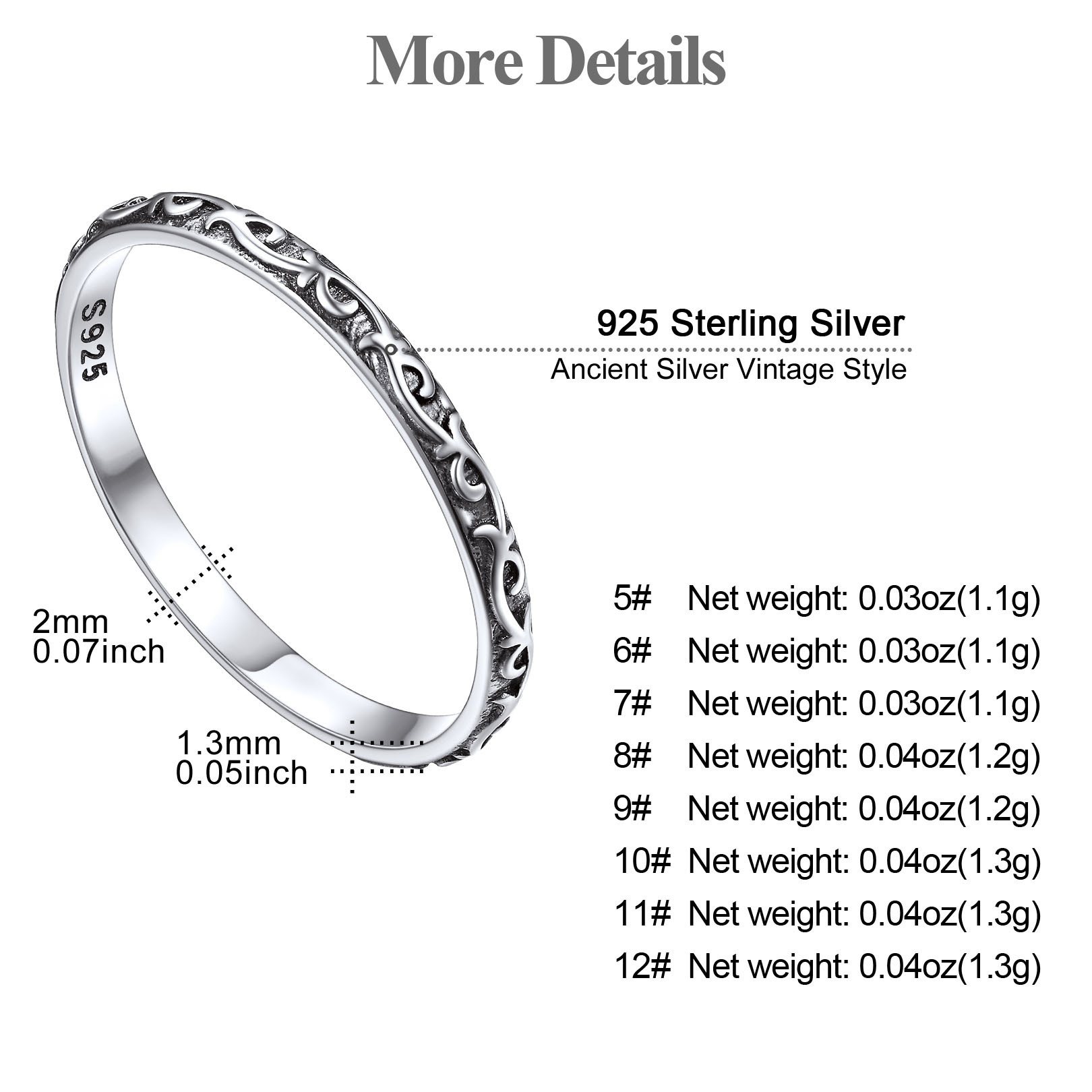 - Unique design: The low-key and restrained design is suitable for men and women and can be used as couple rings. The vintage filigree carving is very exquisite.